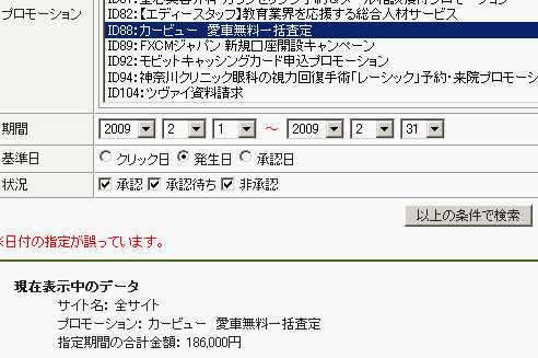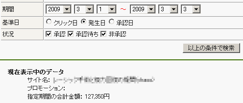 (アフィリエイトBさんの画面)
